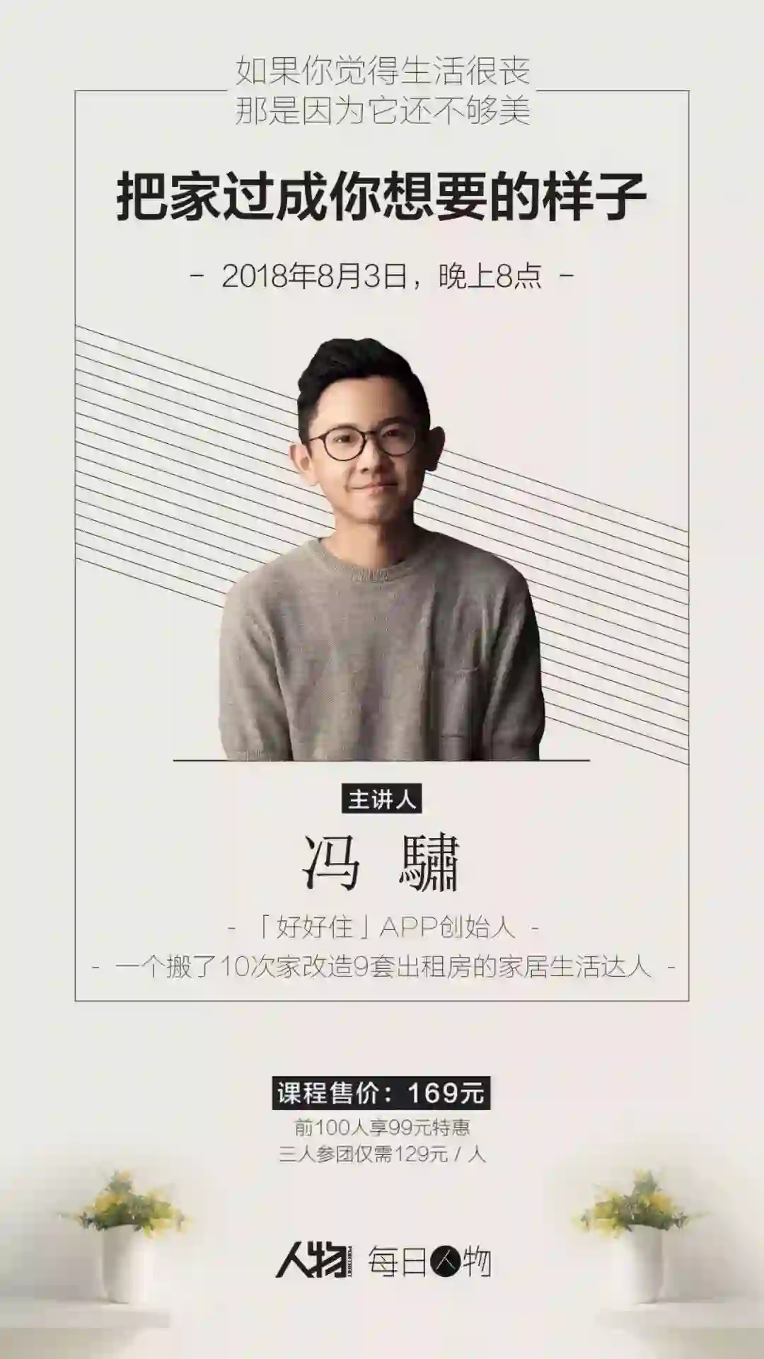 冯驌,「好好住」APP创始人,一个搬了10次家改造了9套出租房的家居生活达人。