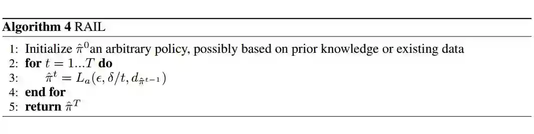 RAIL 是一种理想化的算法,其目的是用于实现理论目标的分析。但是,主要由于在早期迭代中使用了未标注的状态分布(可以与 d_π∗ 有很大的差异),这种算法在实际应用上可能有很多低效的地方。