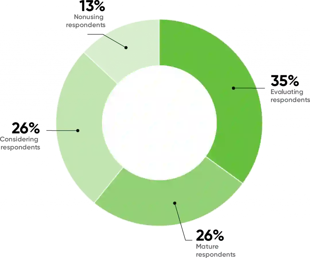 O'Reilly 在《2021 年企业人工智能应用报告》中使用这个引人注目的饼状图说明了这一点,该饼图显示,只有四分之一的受访者表示他们已经成熟部署了人工智能技术。