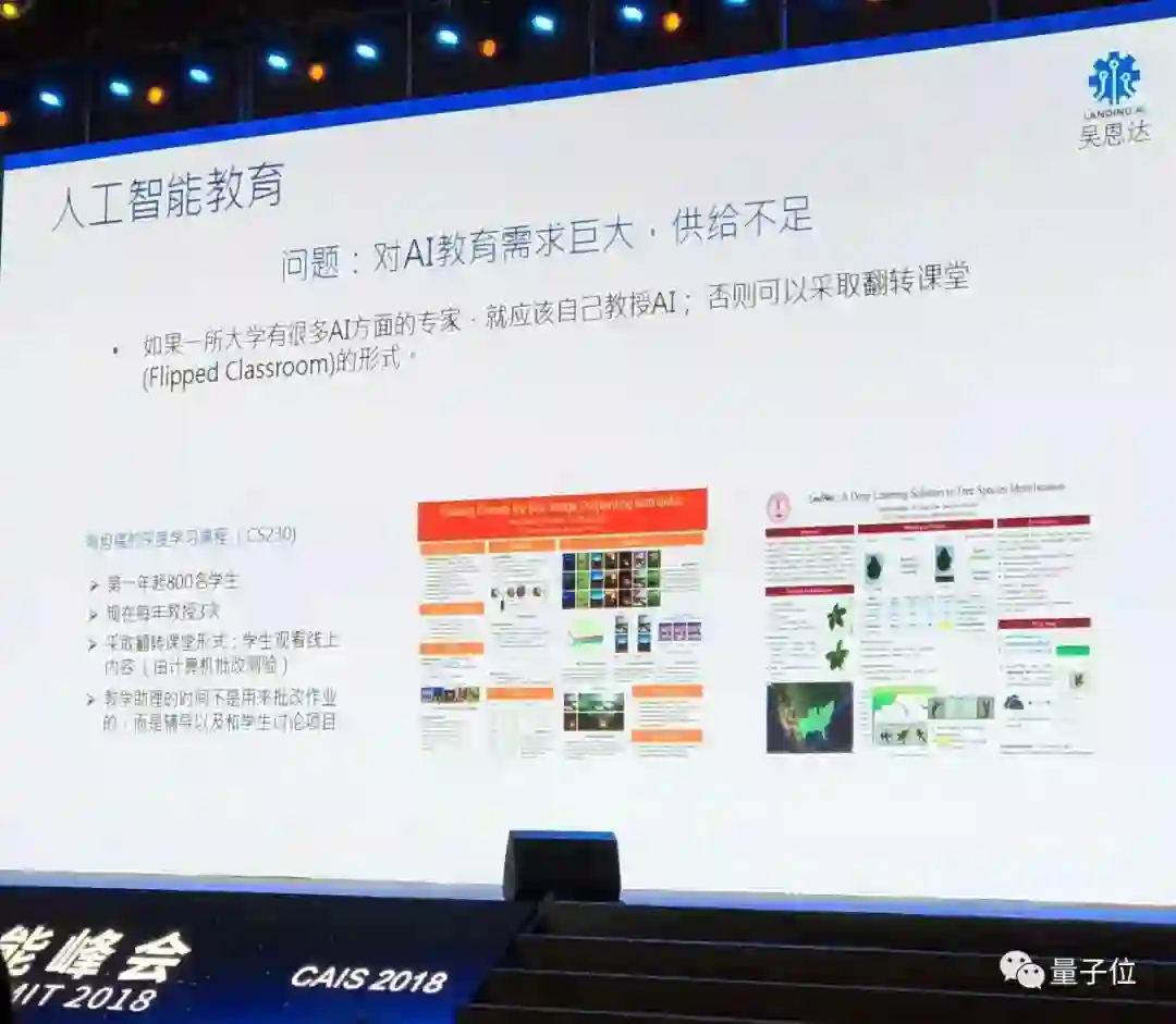 比如斯坦福CS230课程,第一年就有800名学生学习了这套课程,我们现在每年教三次,学生在线上听课,然后由计算机批改作业,不需要人类助教来批改,这样人类助教就可以把时间精力投入到辅导学生、指导项目上。