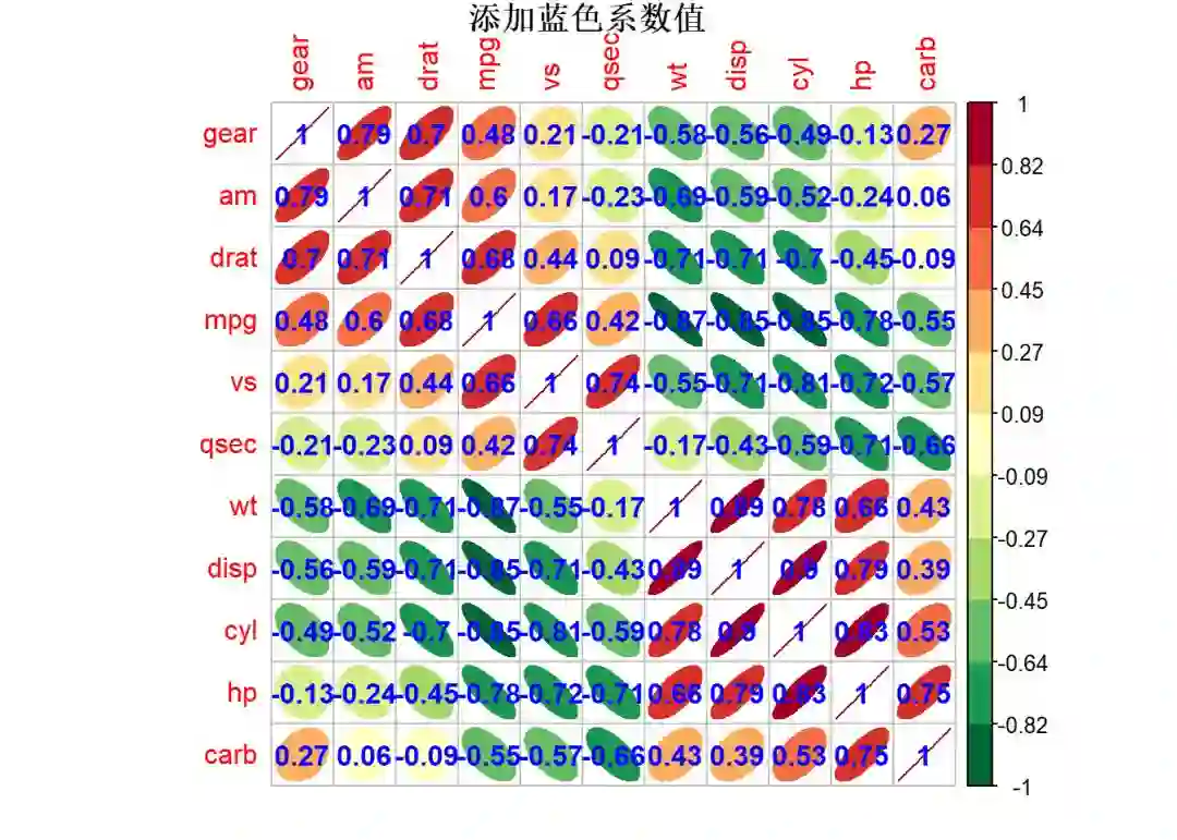 3 title = "添加蓝色系数值", diag = TRUE, mar = c(1,1,1,1))