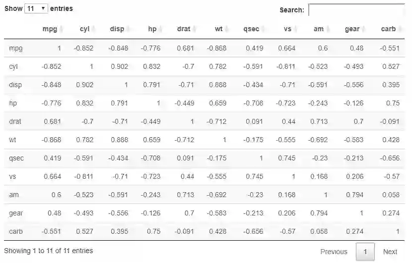 12DT::datatable(round(cor(mtcars), 3),