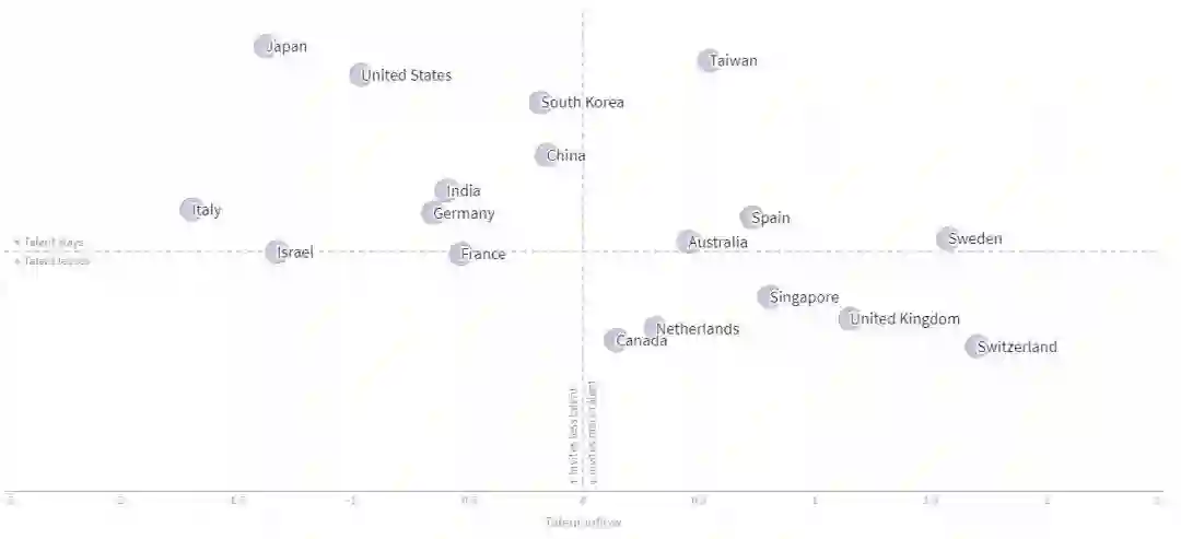 AI人才流入率和流出率这两个指标可以在一定程度上反映一个国家吸引外来AI人才和留住本地AI人才的能力。