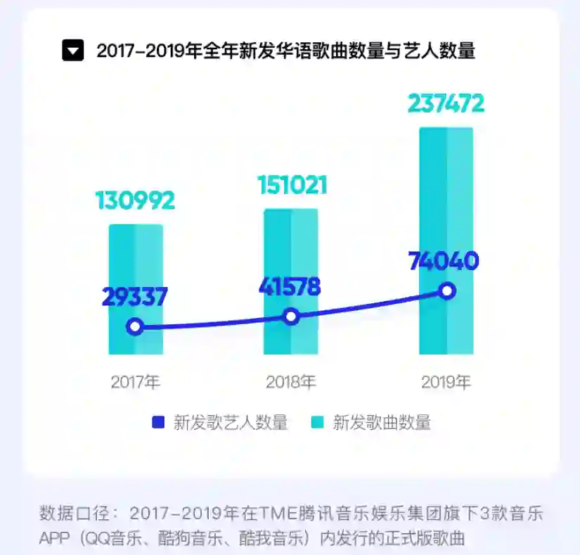 3月23日,腾讯音乐娱乐集团(TME)旗下「由你音乐榜」发布了首篇年度综合性行业解读报告,报告从音乐歌曲、歌手、跨界等多方面进行回顾与融合,在音乐泛行业联动的2019年,结合TME自身的音乐和宣发基因,将流媒体时代的行业“中局”与“泛音娱联动”的行业趋势娓娓道来。