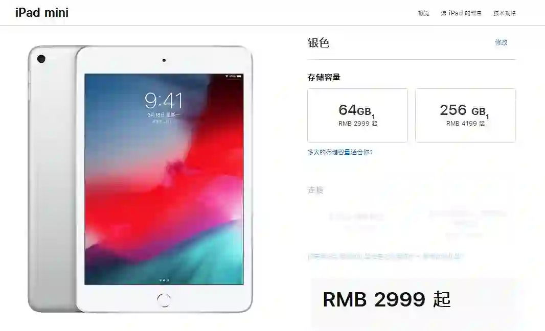 64GB版本3999元,256GB版本5199元。当然,加了蜂窝网络是另算了。