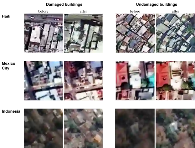 虽然当前模型在使用相同地区(例如,同一城市或国家)的建筑物进行训练和测试时运行良好,但我们的最终目标是希望模型能够准确评估世界上各地发生的灾害对建筑物的损坏程度,而不仅仅局限于与训练模型所用的数据类似的灾害。