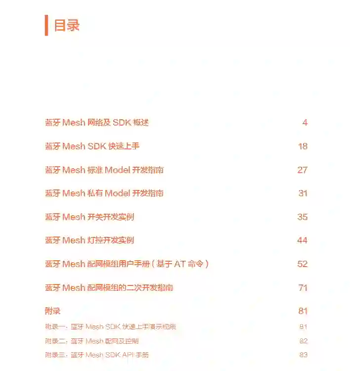 通过本书的指引,开发者可以了解业内性能领先的Mesh协议栈、智能开关开发指南、智能灯控开发指南…快速上手蓝牙Mesh应用方案,解决10多个多场景配网难题。