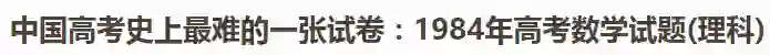 不过1984年高考的老前辈们就没那么幸运了,事过多年,希望你们没被数学耽误了