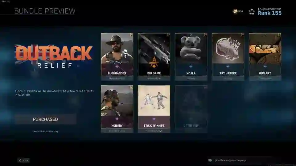 Infinity Ward 最近宣布《使命召唤16:现代战争》将推出义卖套餐「内陆赈灾包」(Outback Relief Pack),该单品的所有收入都将捐献给相关机构,帮助对抗澳大利亚山火。这款义卖包里收录的内容有:一款皮肤、一把独家狙击步枪皮肤,一款考拉主题武器涂装,免费为战斗通票升一级等等,售价为1800点券,约合20美元。