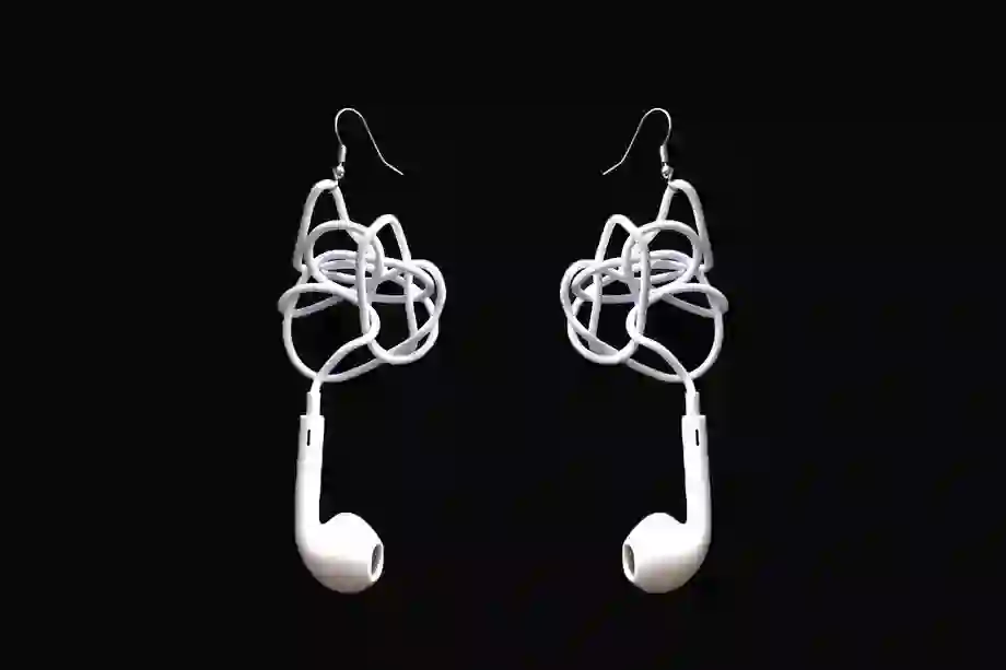 在苹果通过 AirPods 开启了真无线耳机的潮流之后,手机行业的竞争对手也纷纷取消 3.5mm 音频插孔,曾经标配的有线耳机也被弃如敝屣。不过艺术家 Aleia Murawski 和 Samuel Coeland,却为 EarPods 有线耳机找到了另一个闪耀的舞台 —— 将其改造成「一团乱麻」风格的时尚耳坠。