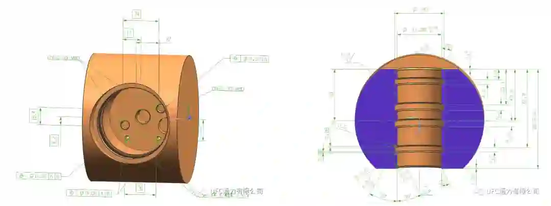 NX软件提供了产品与制造信息(PMI)功能模块,使用户能够根据MBD标准完成三维数字化产品定义,实现数据集的分类组织与管理。对于地层测试器EFDT基体,利用PMI工具实现产品定义信息的清晰表达。