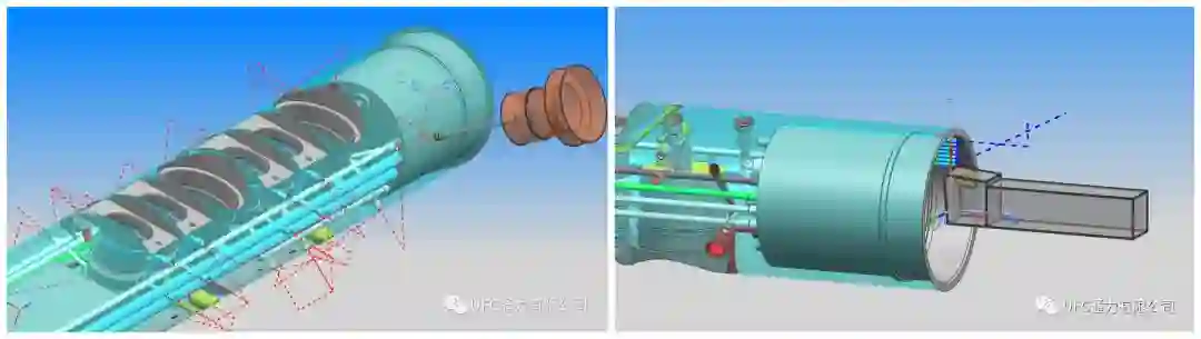(a) EFDT泵抽模块基体半剖MBD三维标注模型
