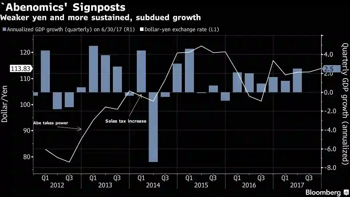 “安倍经济学”的导向作用:逐渐疲软的日元和缓慢增长的经济