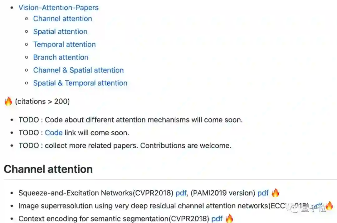 在大量调查之后,论文将注意力机制分为多个类别,GitHub还给出了各类别下提到内容的PDF下载文件: