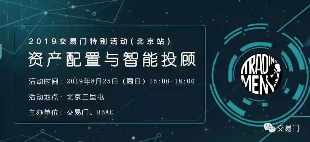 本次活动由交易门和BBAE主办,围绕2019中国资产配置和智能投顾进行分享和讨论。必贝证券CEO者希博、宏观交易员Yu&Yan将以全球资产配置的宏观视角展开分析,中国资产配置的未来和方向。国内某大型资管公司投资经理“狗哥”将从汇率角度来看全球资产的格局以及如何看待最近人民币破七的问题。通过交易门报名本次活动免费。