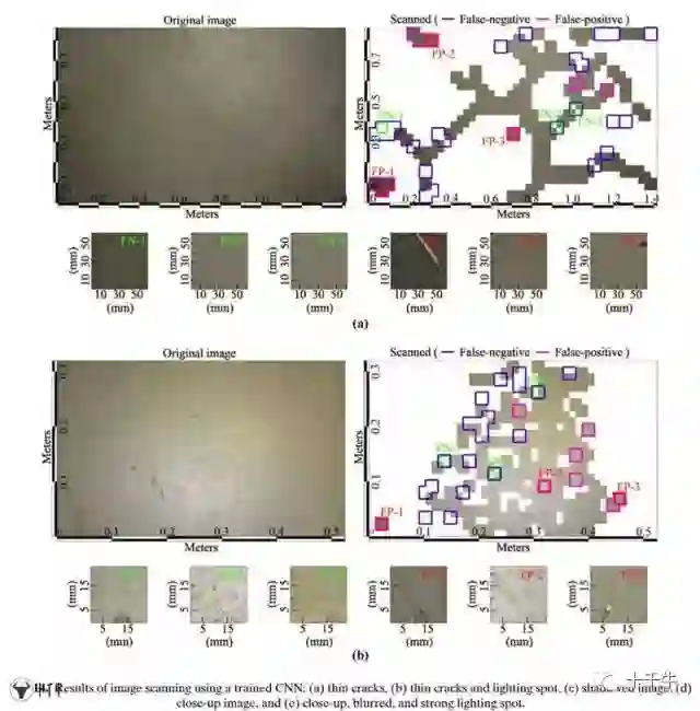 由此可见,CNNs可以在一张陌生的图片中识别出裂缝的位置,并且对裂缝进行分类——这些目前还都是由人工完成的工作,将来有望被机器完全取代,真是令人兴奋不已!