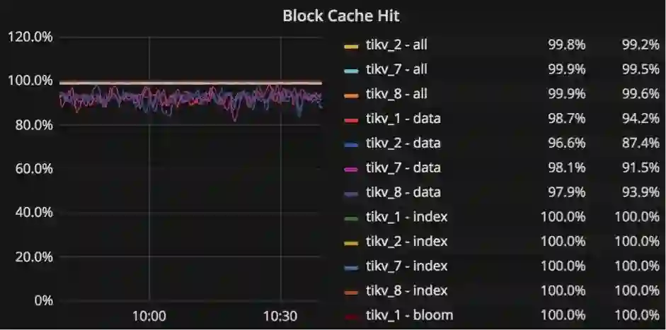 当写入任务频繁读取’write’列族并且块缓存命中率低于 90% 时,在 RocksDB 中增加 block-cache-size 的值。