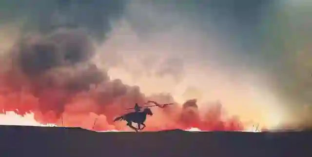 仅仅三年之后,叛军揭竿而起,士兵们从城楼上向皇帝射出乱箭,李存勖身受重伤,亲信却早已不见踪影。午时,皇帝奄奄一息倒在绛霄殿廊下,备受其宠幸的艺人们围聚在他周围,收集乐器,一一点燃,扔在李存勖身上,一瞬之间,帝国灰飞烟灭。