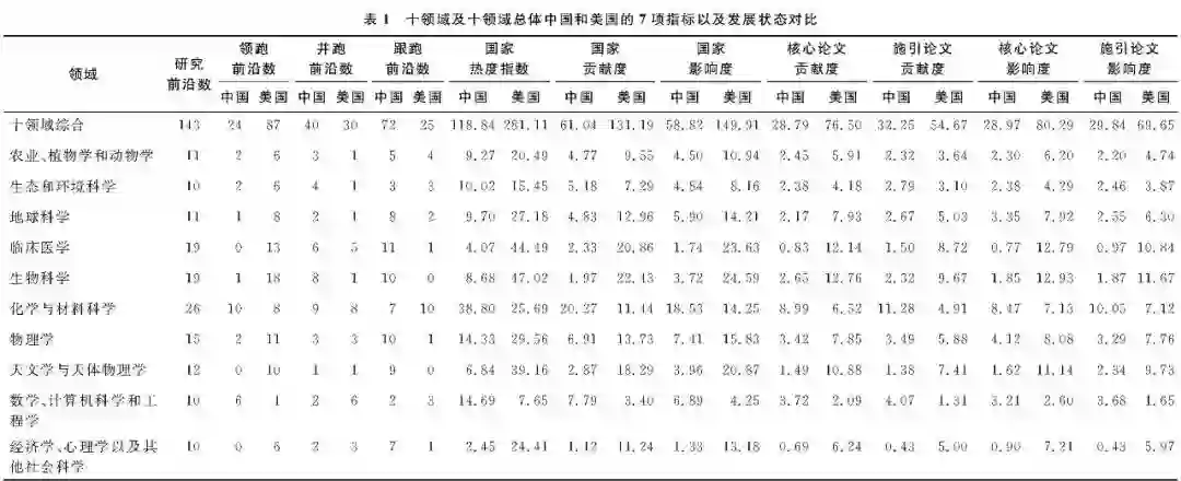 此后,2016年统计分析了180个前沿。美国在152个前沿中有核心论文入选,在106个前沿的核心论文数排名第1。中国则在68个前沿中有核心论文入选,在30个前沿的核心论文数为第1。