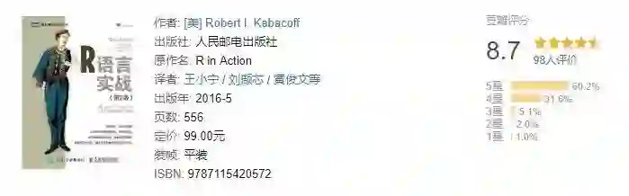 如果要用R语言做数据分析,建议读完《深入浅出数据分析》之后,就开始读这本。从工具的安装,到具体分析方法在R语言中的实现,讲解详细,可操作性极强,是一本非常值得读的数据分析书。