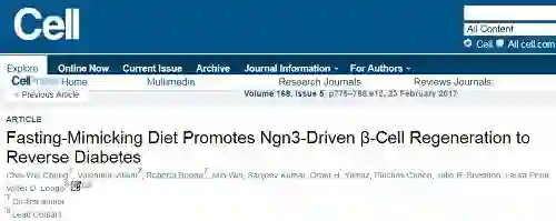 在1型和晚期2型糖尿病中,胰腺失去了分泌胰岛素的β细胞。而该研究发现,禁食样饮食(fasting-like diet)能够促进新的胰岛素分泌细胞的生长。研究还显示,每周4天进行禁食模拟饮食(fasting-mimicking diet)能在小鼠中显著逆转糖尿病。具体表现为:恢复了健康的胰岛素生产、降低了胰岛素抵抗、显示出更稳定的血糖水平。