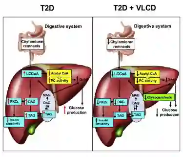 最终,研究人员确定了三种与“VLCD在糖尿病动物中快速降低血糖浓度这种显著作用”相关的主要机制。具体来说,在肝脏中,VLCD通过以下3种途径降低葡萄糖产生:1)减少乳酸和氨基酸转化为葡萄糖;2)降低肝脏糖原转化为葡萄糖的速度;3)降低脂肪含量,这反过来,改善了肝脏对胰岛素的响应。值得一提的是,研究者们仅在3天内就观察到了VLCD这些积极的影响。