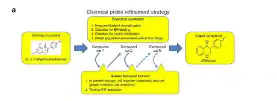 临床上认为,一般出现远处的转移灶就意味着患者错过了手术良机。虽然已经探明了转移相关的部分调控通路,并且也对这些调控通路研发了一些靶向药物。但由于已探明的调控通路大多涉及多条细胞代谢途径,因此药物疗效欠佳。为此,研究人员利用小分子化合物改变其单个原子便可改变整个化合物生化特性的属性,设计和合成了一种新型的生物探针-KBU2046。