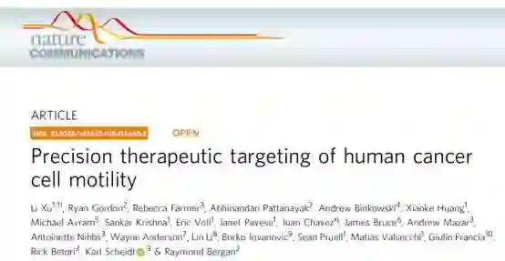 Li Xu, Ryan Gordon, Rebecca Farmer, Abhinandan Pattanayak, Andrew Binkowski, Xiaoke Huang. Precision therapeutic targeting of human cancer cell motility