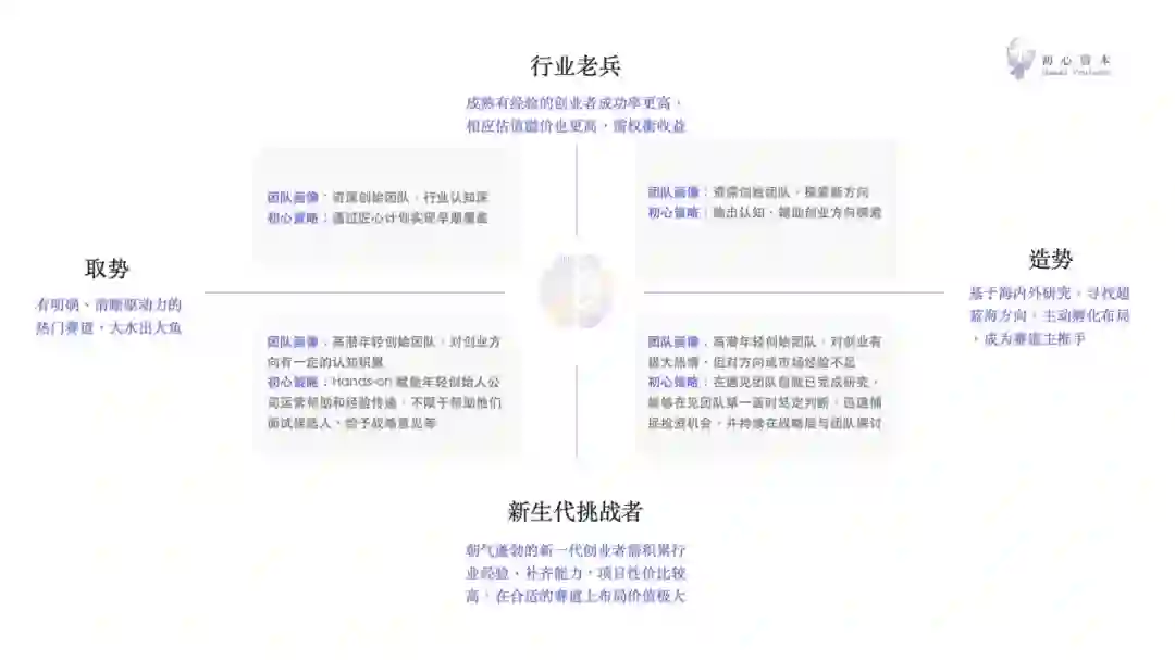 这样的策略源于初心资本的商业模式。早期投资往往是广泛播种的策略,但是真正的回报往往取决于其中少数的Value driver。“明确一些原则之后,我们就能区分哪些锱铢必较是低效的。我们只需要在重要的决策做出审慎的判断,对那些并不影响LP核心回报的决策,我们通常会选择更理解创始人,看中长期合作的隐性价值。”