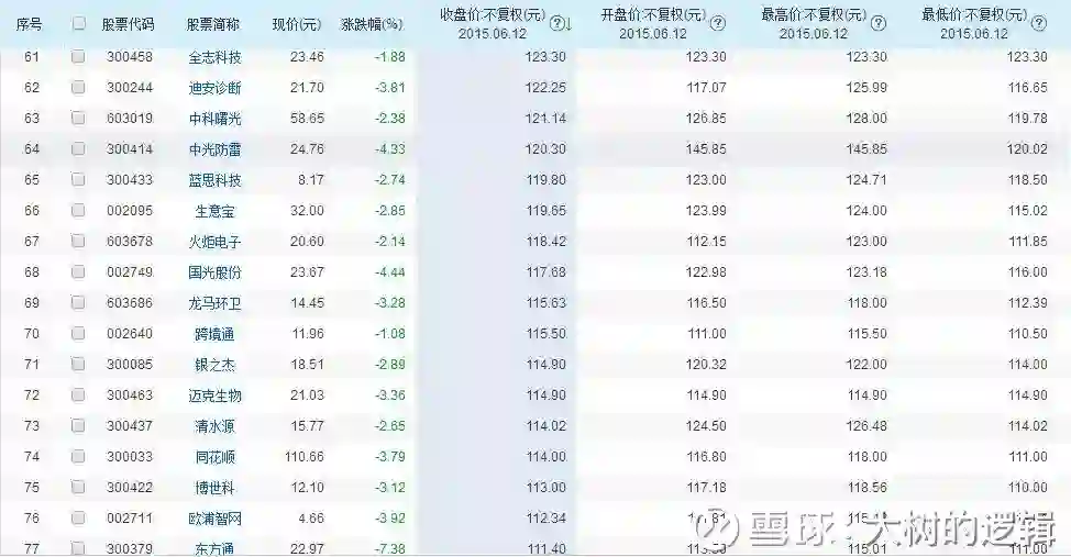 狂欢盛宴之后则落得一地鸡毛,96只百元股只剩下区区11只,可想2015年是多么的疯狂。要想我灭亡,必先让我疯狂。
