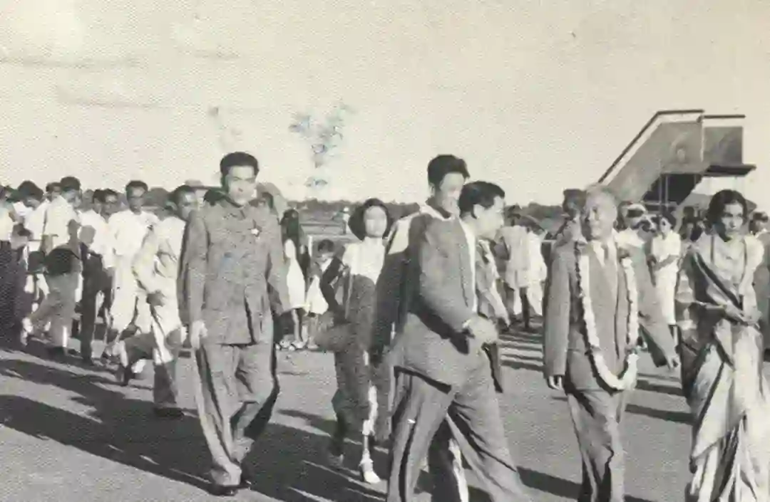 时任文化部副部长的丁西林(右 2)率团出访印度