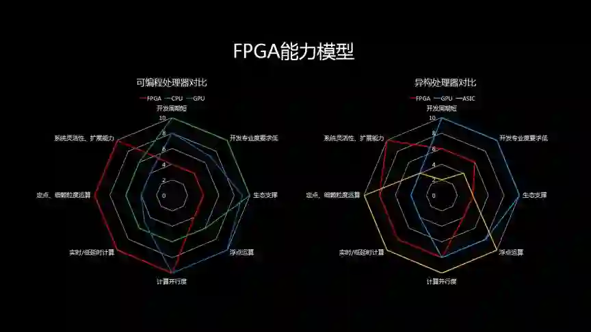 FPGA最大的特点是直接基于硬件编程,拥有高吞吐和低延时等特性,可以很容易搭建出数据并行通道,同时完成流水线并行;相对于ASIC,又具有软件的可编程性和灵活性,这让它能完美适应AI等对大算力有刚性需求并且尚处于快速迭代期的场景。
