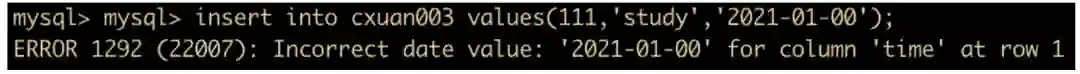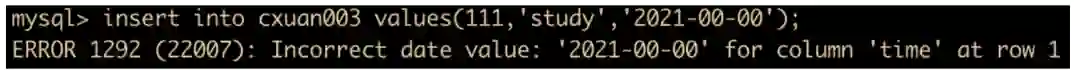 insert into cxuan003 values(111,'study','2021-00-00');
