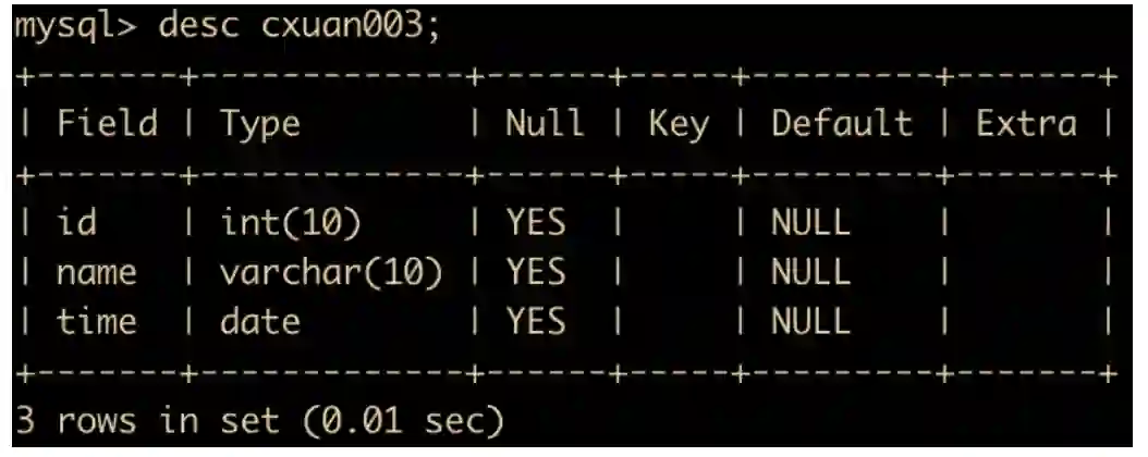 insert into cxuan003 values(111,'study','2021-01-00');