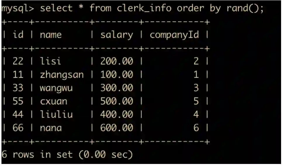 select * from clerk_info order by rand();