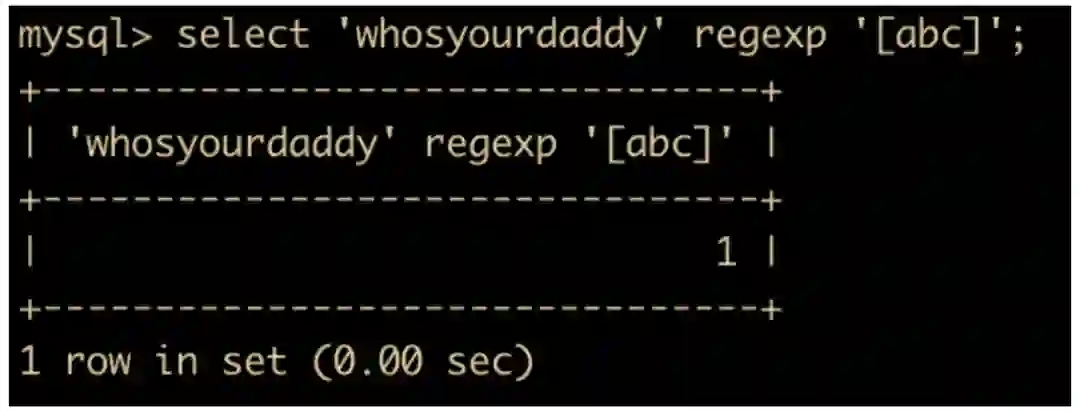 select 'whosyourdaddy' regexp '[abc]';