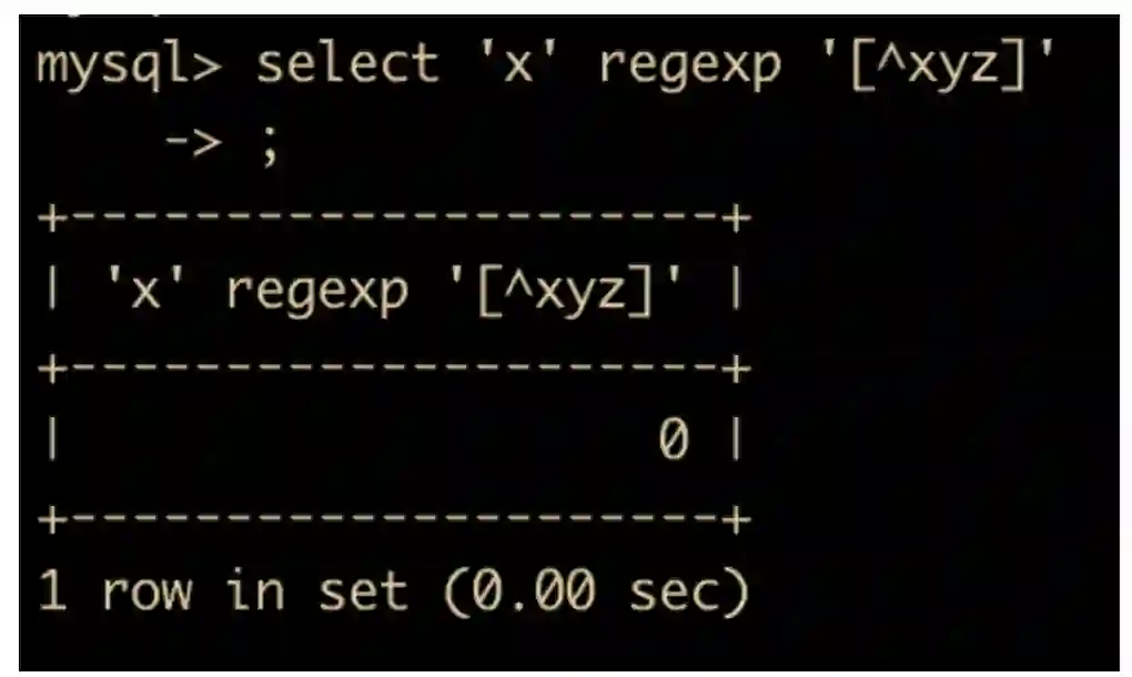 select 'x' regexp '[^xyz]';