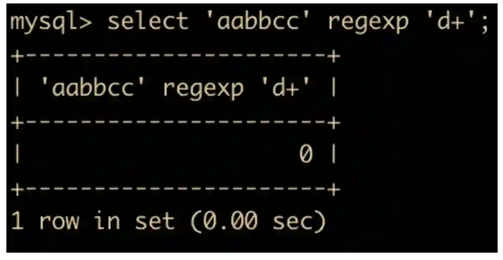 select 'aabbcc' regexp 'd+';