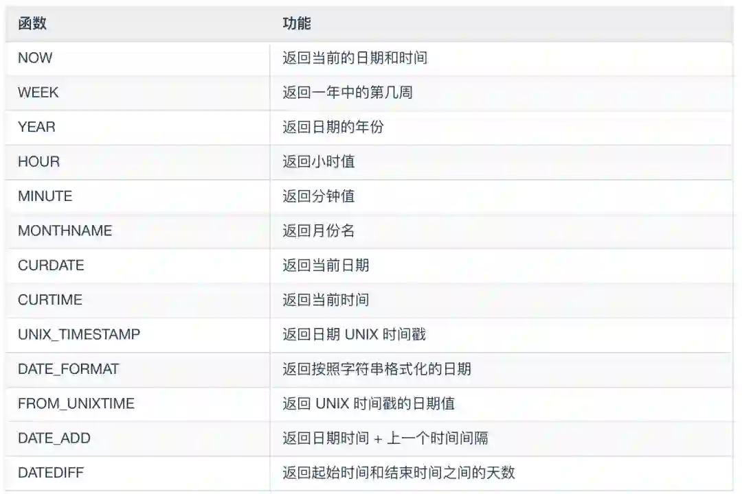 NOW(): 返回当前的日期和时间