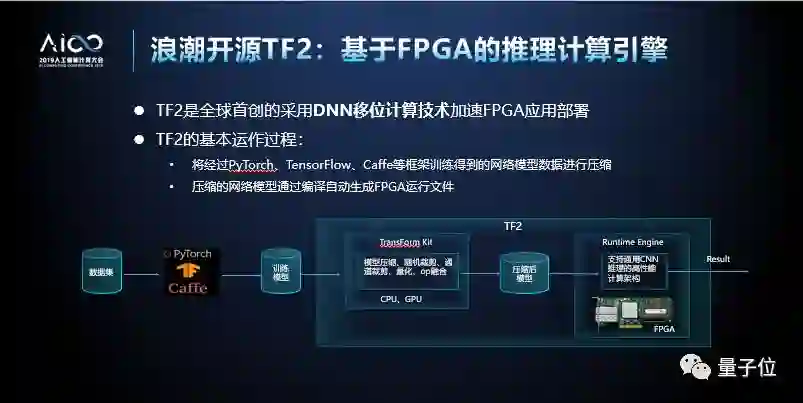 此外,浪潮还开源了智能化引擎TF2。TF2基于FPGA,在全球范围内首先采用DNN位移计算技术加速FPGA应用部署。