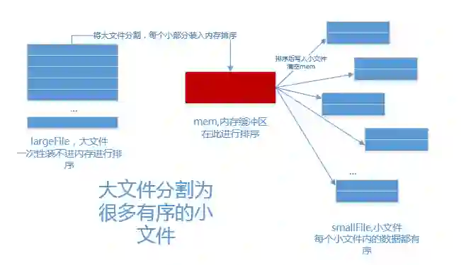 循环利用memBuffer直到大文件处理完毕,得到n个有序的磁盘文件: