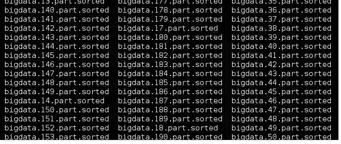 内存中维护一个极小的核心缓冲区memBuffer,将大文件bigdata按行读入,搜集到memBuffer满或者大文件读完时,对memBuffer中的数据调用内排进行排序,排序后将有序结果写入磁盘文件bigdata.xxx.part.sorted.