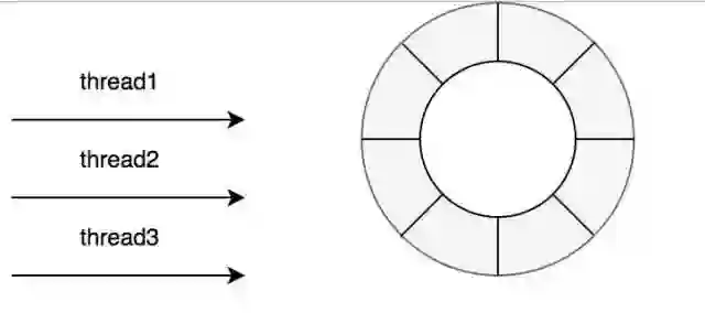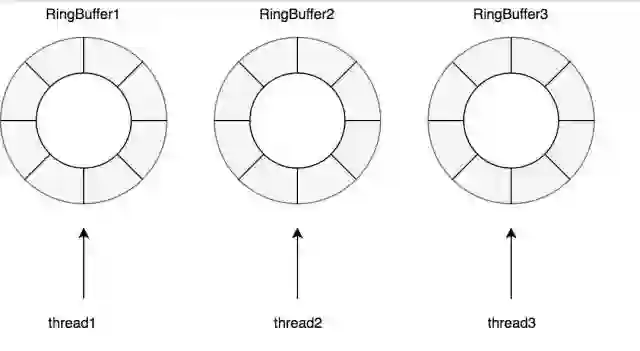 对于读操作比写操作更加频繁,进一步减少竞争,其为每个线程配备了一个RingBuffer: