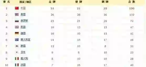 中国一共得了100枚奖牌