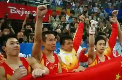 2008年8月12日,北京奥运会上中国体操男团获得冠军,赛后队员落下男儿泪