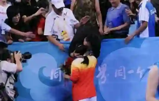 8月22日晚,王楠获得北京奥运会乒乓球女子单打银牌,王楠赛后激动落泪,与老公在观众席热吻。