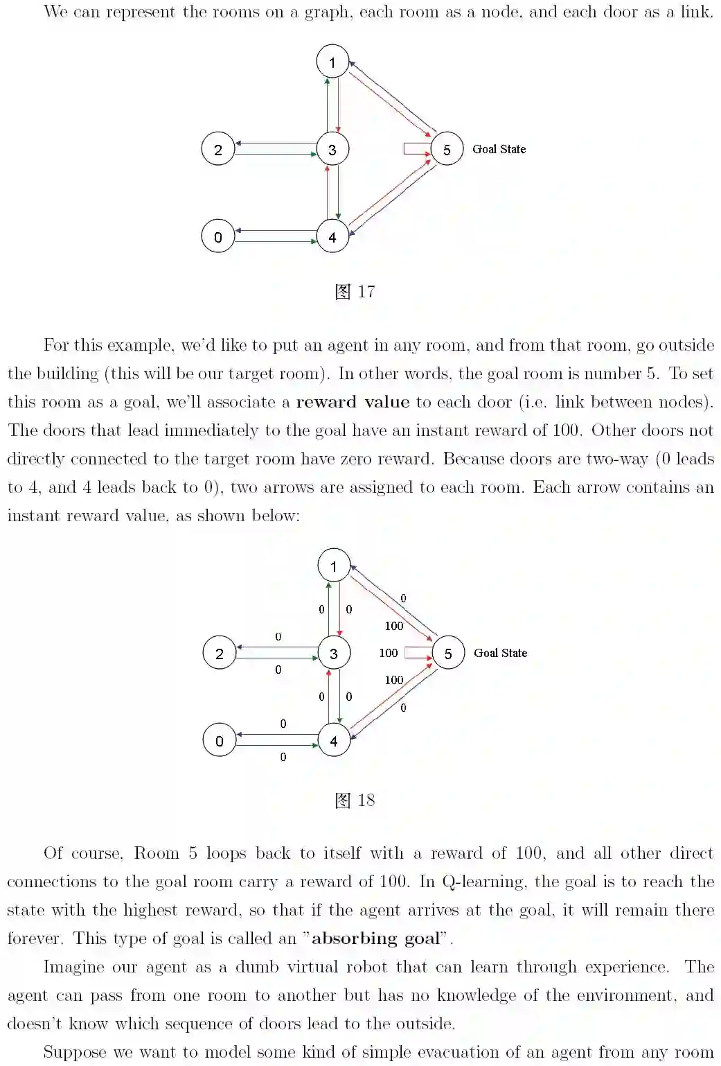 本文是对 http://mnemstudio.org/path-finding-q-learning-tutorial.htm 的翻译,共分两部分,第一部分为中文翻译,第二部分为英文原文。翻译时为方便读者理解,有些地方采用了意译的方式,此外,原文中有几处笔误,在翻译时已进行了更正。这篇教程通俗易懂,是一份很不错的学习理解 Q-learning 算法工作原理的材料。