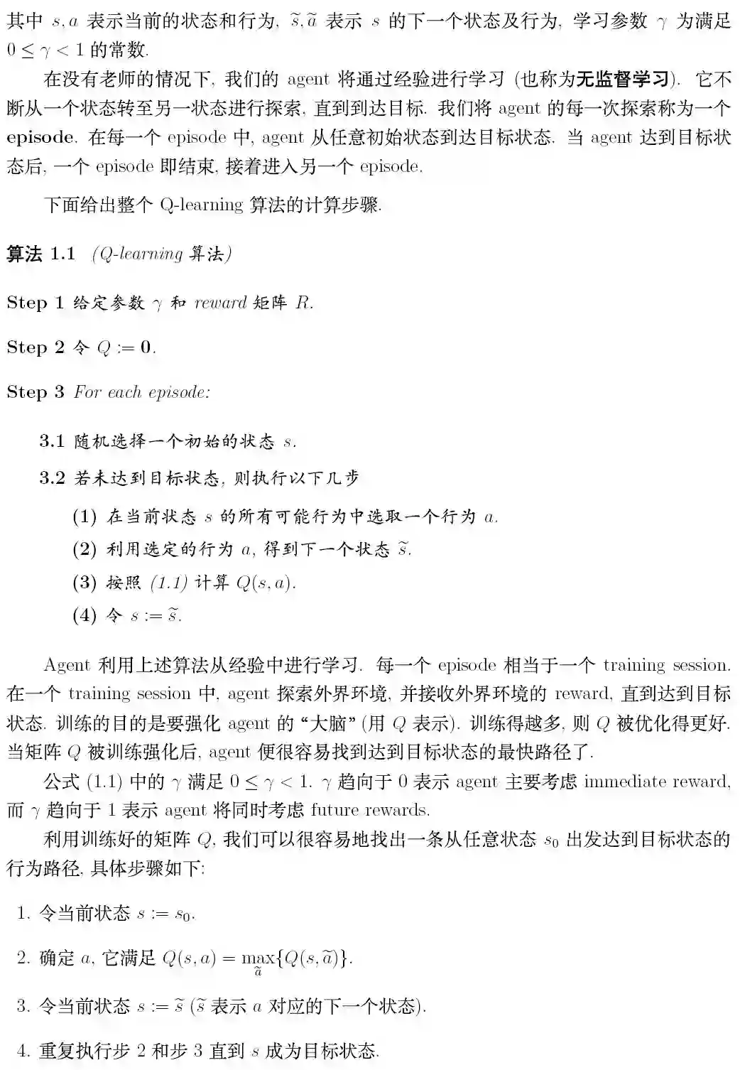 (1)在当前状态s的所有可能行为中选取一个行为a