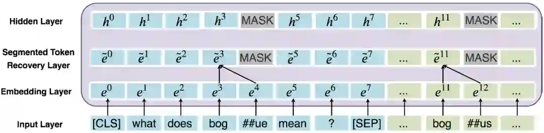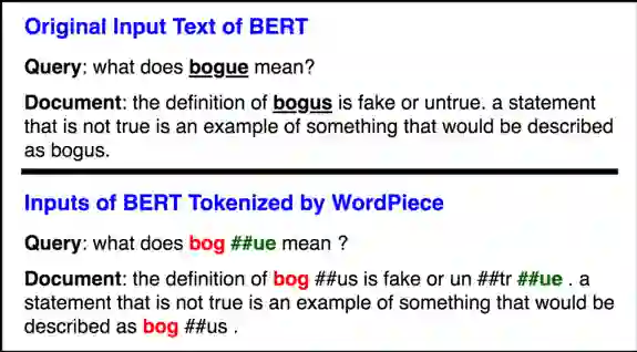 2. MARCO是标注不充分的数据集合。换句话说,许多和问题相关的文档未被标注为1,这些噪声容易造成模型过拟合。第一阶段的模型可以用来过滤训练数据中的噪声,从而可以有更好的数据监督第二阶段的精调模型。解决OOV的错误匹配问题在BERT中,为了减少词表的规模以及解决Out-of-vocabulary(OOV)的问题,使用了WordPiece方法来分词。WordPiece会把不在词表里的词,即OOV词拆分成片段,如图6所示,原始的问题中包含词“bogue”,而文档中包含词“bogus”。在WordPiece方法下,将“bogue”切分成”bog”和“##ue”,并且将“bogus”切分成”bog”和“##us”。我们发现,“bogus”和“bogue”是不相关的两个词,但是由于WordPiece切分出了匹配的片段“bog”,导致两者的相关性计算分数比较高。图6 BERT WordPiece处理前/后的文本为了解决这个问题,我们提出了一种是对原始词(WordPiece切词之前)做精准匹配的特征。所谓“精确匹配”,指的是某个词在文档和问题中同时出现。精准匹配是信息检索和机器阅读理解中非常重要的一个技术。根据以往的研究,很多阅读理解模型加入该特征之后都可以有一定的效果提升。具体的,在Fine-tuning阶段,我们对于每个词构造了一个精准匹配特征,该特征表示该单词是否出现在问题以及文档中。在编码阶段之前,我们就将这个特征映射到一个向量,和原本的Embedding进行组合: 图7 词还原机制的工作原理除此之外,我们还提出了一种词还原机制如图7所示,词还原机制能够将WordPiece切分的Subtoken的表示合并,从而能更好地解决OOV错误匹配的问题。具体来说,我们使用Average Pooling对Subtoken的表示合并作为隐层的输入。除此之外,如上图7所示,我们使用了MASK处理Subtoken对应的非首位的隐层位置。值得注意的是,词还原机制也能很好地避免模型的过拟合问题。这是因为MARCO的集合标注是比较稀疏的,换句话说,有很多正例未被标注为1,因此容易导致模型过拟合这些负样本。词还原机制一定程度上起到了Dropout的作用。总结与展望以上内容就对我们提出的DR-BERT模型进行了详细的介绍。我们提出的DR-BERT模型主要采用了任务自适应预训练以及两阶段模型精调训练。除此之外,还提出了词还原机制和精确匹配特征提高OOV词的匹配效果。通过在大规模数据集MS MARCO的实验,充分验证了该模型的优越性,希望这些能对大家有所帮助或者启发。参考文献[1] Payal Bajaj, Daniel Campos, et al. 2016. "MS MARCO: A Human Generated MAchine Reading COmprehension Dataset" NIPS.[2] Christopher J. C. Burges, Robert Ragno, et al. 2006. "Learning to Rank with Nonsmooth Cost Functions" NIPS.[3] Jun Xu and Hang Li. 2007. "AdaRank: A Boosting Algorithm for Information Retrieval". SIGIR.[4] Po-Sen Huang, Xiaodong He, et al. 2013. "Learning deep structured semantic models for web search using clickthrough data". CIKM.[5] Chenyan Xiong, Zhuyun Dai, et al. 2017. "End-to-end neural ad-hoc ranking with kernel pooling". SIGIR.[6] Zhe Cao, Tao Qin, et al. 2007. "Learning to rank: from pairwise approach to listwise approach". ICML.[7] Fen Xia, Tie-Yan Liu, et al. 2008. "Listwise Approach to Learning to Rank: Theory and Algorithm". ICML.[8] Mike Taylor, John Guiver, et al. 2008. "SoftRank: Optimising Non-Smooth Rank Metrics". In WSDM.[9] Devlin, J., Chang, M. W., Lee, K., & Toutanova, K. 2018. "Bert: Pre-training of deep bidirectional transformers for language understanding". arXiv preprint arXiv:1810.04805.[10] Rodrigo Nogueira and Kyunghyun Cho. 2019. "Passage Re-ranking with BERT". arXiv preprint arXiv:1901.04085 (2019).[11] Rodrigo Nogueira, Wei Yang, Kyunghyun Cho, and Jimmy Lin. 2019. "Multi-stage document ranking with BERT". arXiv preprint arXiv:1910.14424 (2019).[12] Zhuyun Dai and Jamie Callan. 2019. "Context-aware sentence/passage term importance estimation for first stage retrieval". arXiv preprint arXiv:1910.10687 (2019)[13] Hiroshi Mamitsuka. 2017. "Learning to Rank: Applications to Bioinformatics".