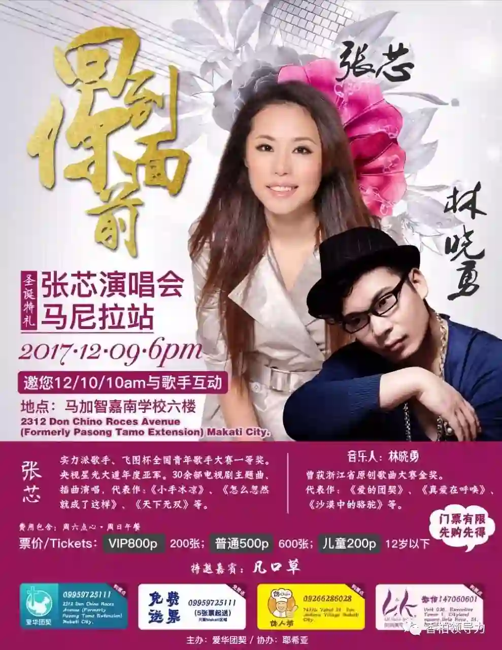 前两天我跟着耶希亚团队去了菲律宾,菲律宾那边也有很多的华人,其实菲律宾应该算是一个很棒的天主教国家,因为常年受西班牙的统治,后来又得到美国的帮助,所以他们是相信上帝的,而且我们发现更多的人愿意转向基督。这一次我们去的是当地一个很棒的基督徒张先生在那里开的学校,也在那里建立教会,给大家传福音。通过学生在那边就读,让孩子慢慢接受基督教的影响,然后慢慢再去影响一家人。真的,我觉得神做事真的很奇妙,让这些基督徒这样爱神,让这些基督徒这样愿意付代价把福音广传出去。这一次去菲律宾发现,因着菲律宾的迅速发展,加上中国政府给他们很多的帮助,我们的华人在那边做生意的机会很多,所以很多的华人去到菲律宾在那边建立家庭。在那边让孩子受教育,尤其是可以受到双语的教育,我觉得比国内的环境还要好,因为那边的宗教是非常自由的,基本上孩子一信或者是家长一信,就是一个家庭全信。这一次我们感触也是非常深,我觉得真的现在是华人的时候,我两年前去澳大利亚的时候也有着这样的感觉,真的是神借着我们这些华人在全世界各地把福音广传,让更多的人转向祂,让全世界的华人都拧成一股绳在为上帝做荣耀的见证。这一次我们去菲律宾也使很多的人决志信主,让我觉得“主啊,你真的是带着我们,使我们这些卑微有罪的人,一步一步看到你的大能”,因为谁也没有想到,在伊斯兰教国家会有这么多的人要转向上帝;谁也没有想到,在那么多国家里都有我们的华人每天都在传扬这福音;我也更没有想到,神会带领我不仅在中国做音乐赞美会,也让我在全世界各地做音乐赞美会。所以有些时候我就在想,“神,其实我什么也做不了,因为我只是会唱歌,我只是一个歌手,我真的不知道我能为你做什么?” 但是神就是这样一步步地带着我们,带着我们这些小生命,这些小的还在吃奶的孩子,一步步地成长起来,让我们知道:“孩子,你能走得更远,你能够做更大的事。”